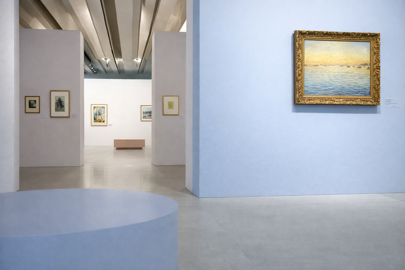 SIGNAC, LES COULEURS DE L'EAU MONTPELLIER MUSÉE FABRE Lieu : Salle d'exposition temporaire (850 m2) Dates : Du 13 juillet au 16 novembre 2013 Mandataire : Martin Michel Graphisme : Costanza Matteucci Éclairage : Musée Fabre Budget travaux : 144 000 € ttc Durée : 8 mois